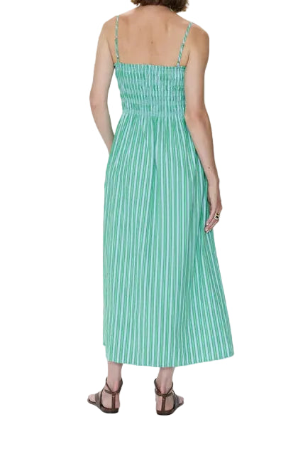 Pistola Bianca Shirred Bodice Dress in Green Blue Stripe