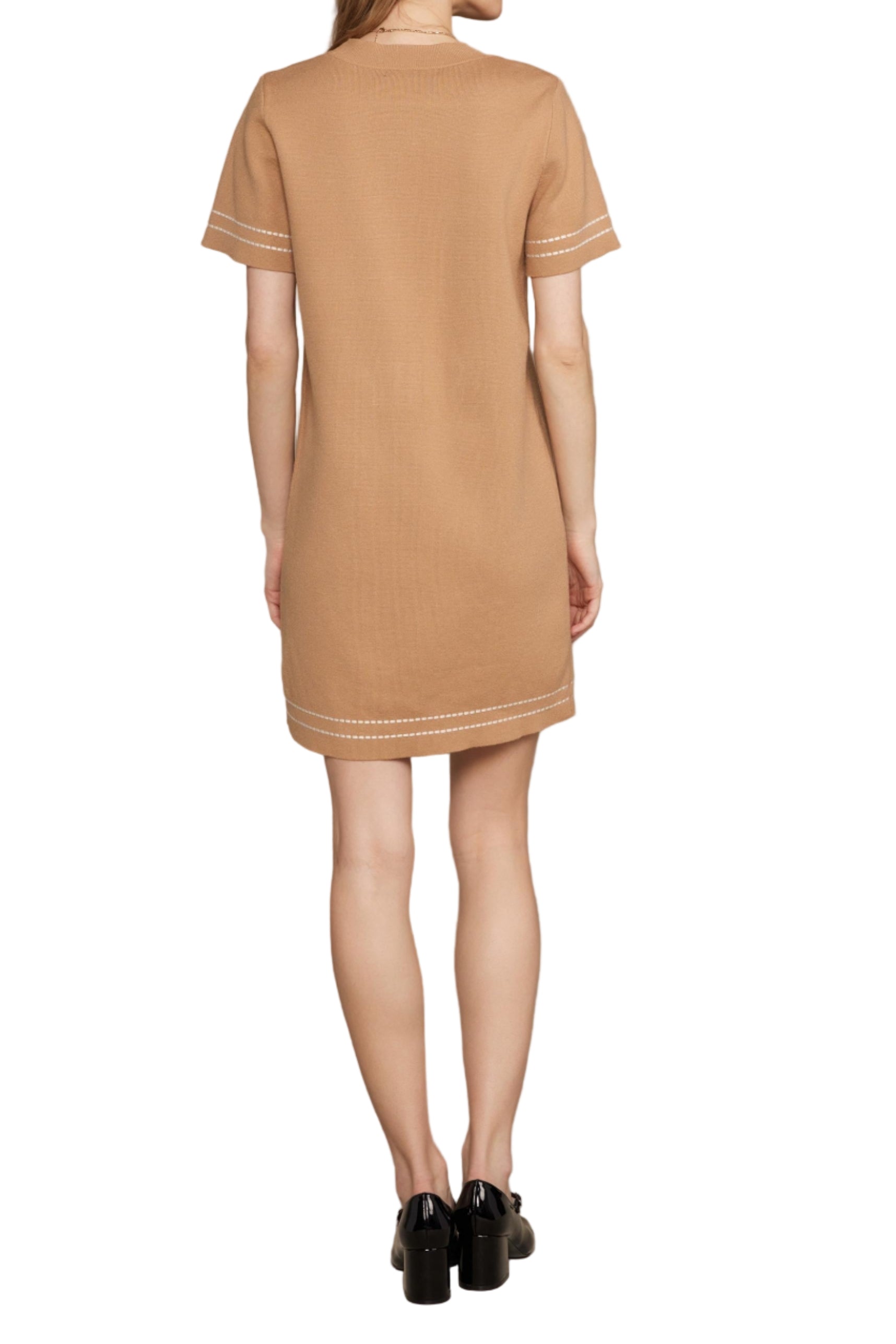 Shirley Stitch Embroidery Knit Tee Mini Dress in Tan